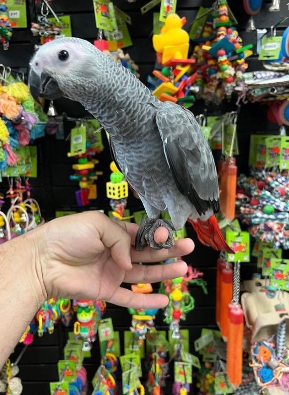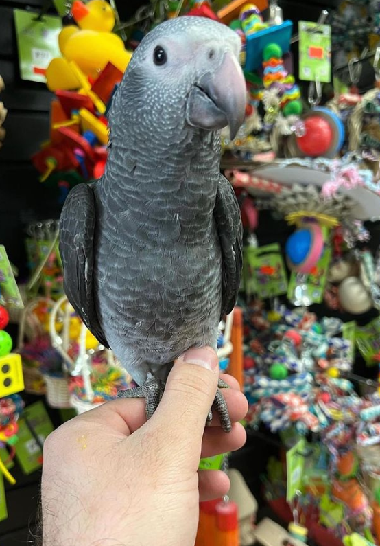 Dieser junge Graupapagei ist neugierig, intelligent und lernfreudig – perfekt für Vogel-Liebhaber, die einen treuen, sozialen und sprechbegabten Begleiter suchen.